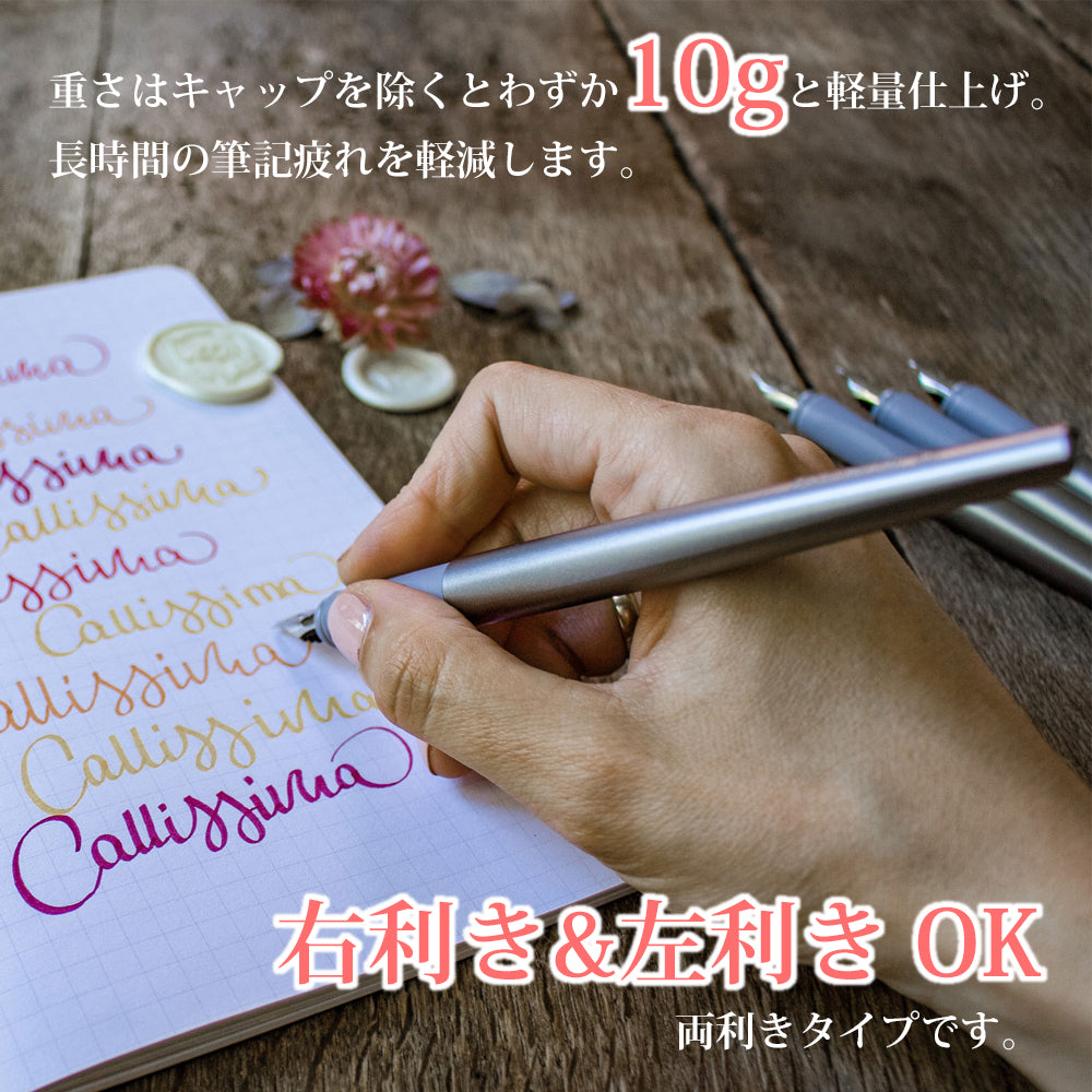 ラバーグリップは滑り止めの役割も果たし、グリップの持ちやすさや使いやすさにより、カリグラフィーの滑らかなペンさばきを助けてくれます。