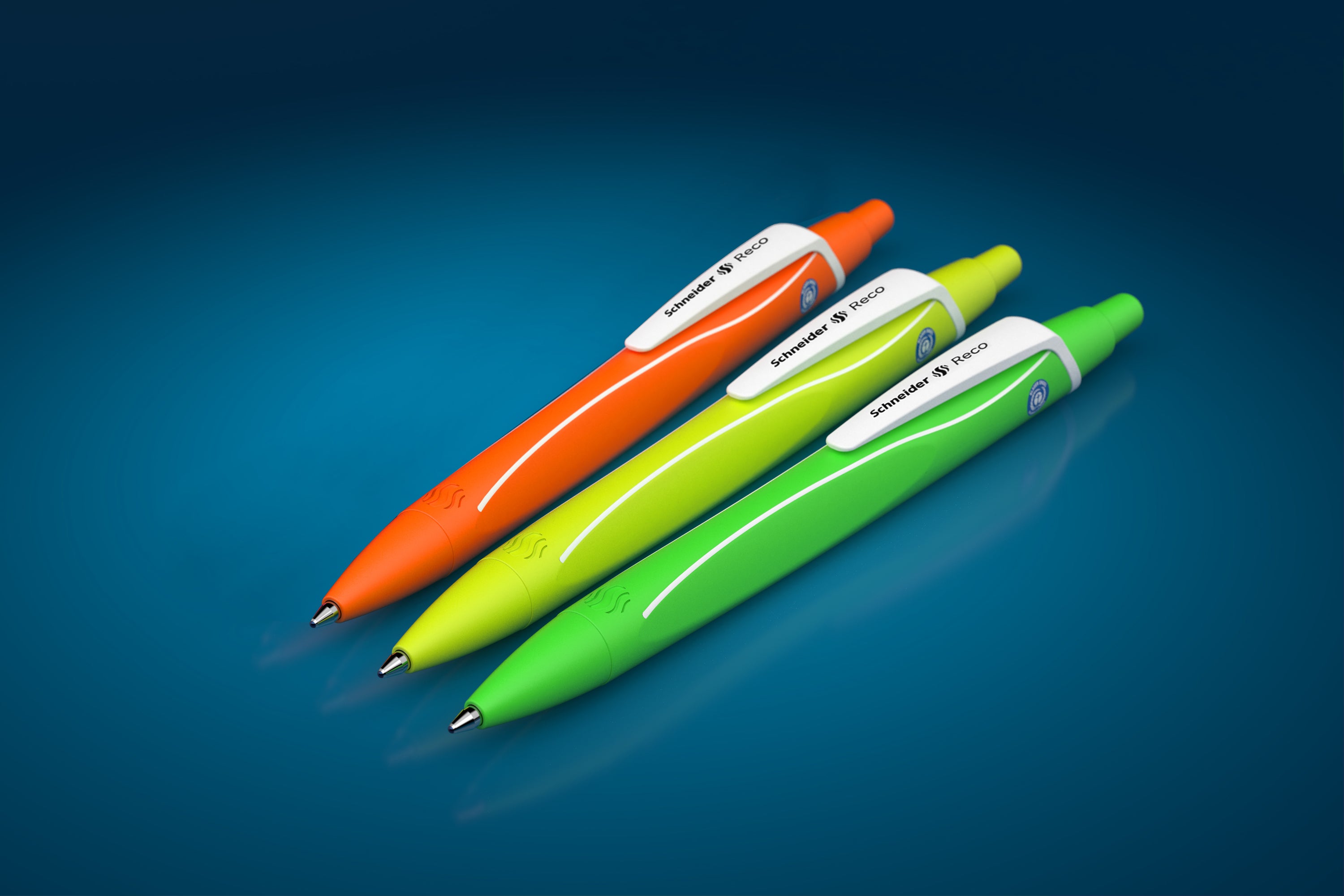 「RECO」は、環境に配慮した製品だけに与えられるブルーエンジェル認証を受けた、世界で初めてのボールペン。